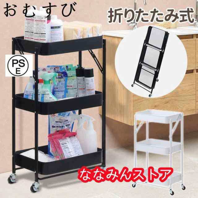 キッチンワゴン キャスター付き スリム 3段 折りたたみ スチールラック 収納ラック 収納棚 ワゴン マルチラック