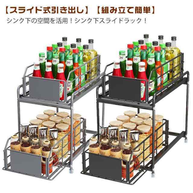 シンク下収納ラック キッチン収納 2段 台所収納 引き出し 棚 収納棚 コンロ下 シンク下収納 シンク下スライドラック 調味料ストッカー 調味料入れ スライド式 バスケット 収納 洗面台下 整理ラック 洗面台 生活用品 スライドラック