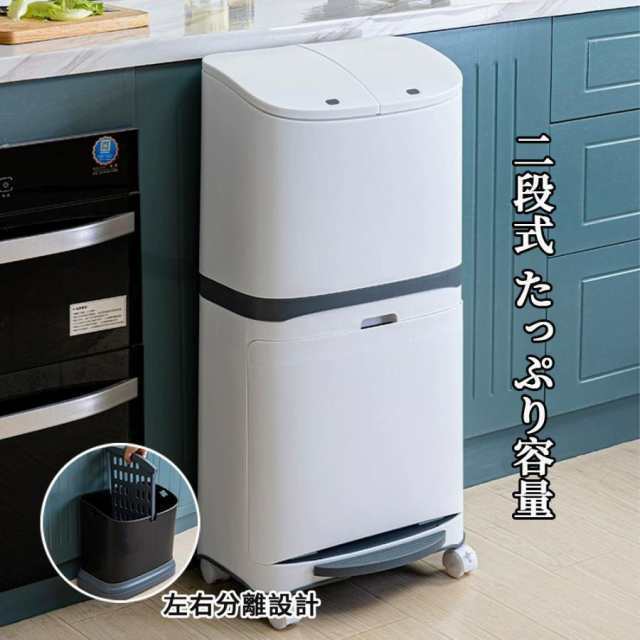 ゴミ箱 45リットル 分別ワゴン ワイド 2段分別 ダストボックス ふた付き 縦型 キッチン 2分別 大容量 ダストボックス リビング