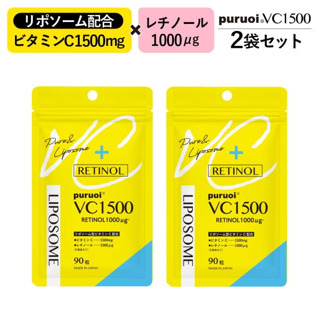 【2袋セット】リポソーム ビタミンC & レチノール 配合 プルオイVC1500 180粒(90粒×2袋) ビタミン リポソーム レチノール サプリ サプリメント 錠剤 日本製 ぷるおう プルオウ 飲むレチノール