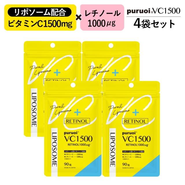 【4袋セット】リポソーム ビタミンC & レチノール 配合 プルオイVC1500 360粒(90粒×4袋/約60日分) ビタミン リポソーム レチノール サプリ サプリメント 錠剤 日本製 ぷるおう プルオウ 飲むレチノール