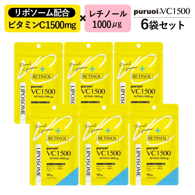 リポソーム ビタミンC & レチノール 配合 プルオイVC1500 540粒(90粒×6袋/約90日分) ビタミン リポソーム レチノール サプリ サプリメント 錠剤 日本製 ぷるおう プルオウ 飲むレチノール