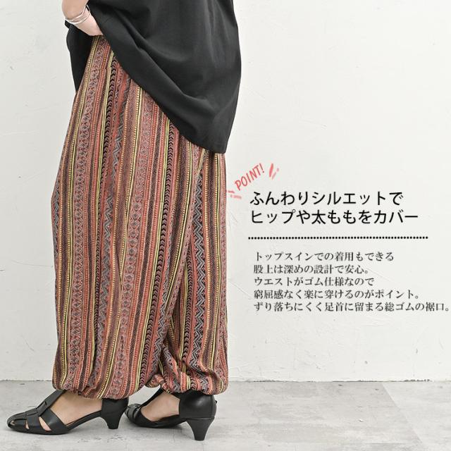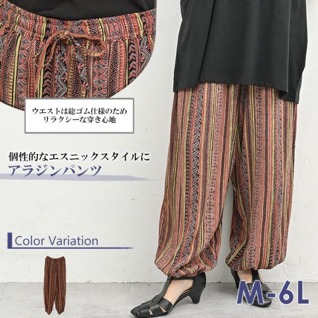 大きいサイズ レディース アラジンパンツ ロング丈 ウエストゴム エスニック柄 裾ゴム ボトムス M-3L/4L-6L ゆったりサイズ ぽっちゃり女子 プラスサイズ
