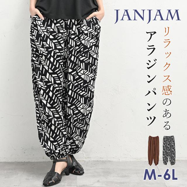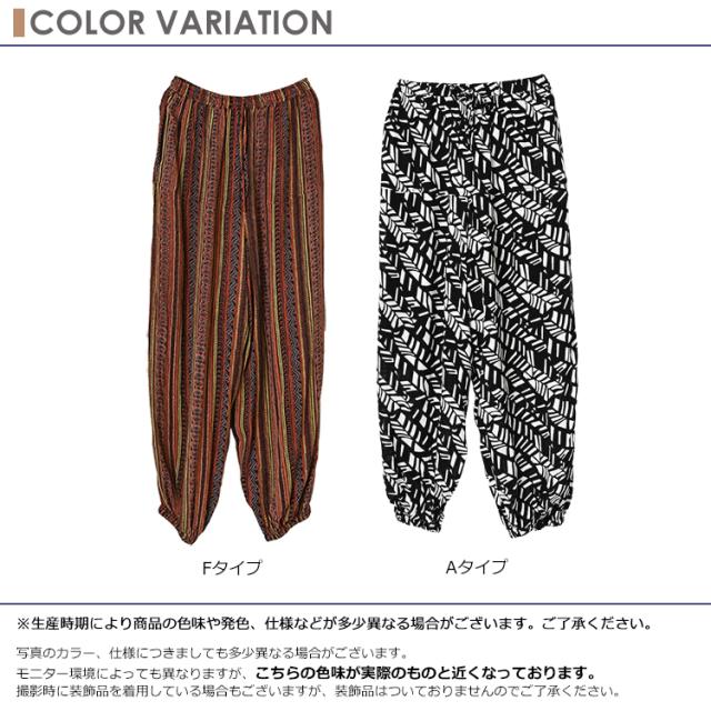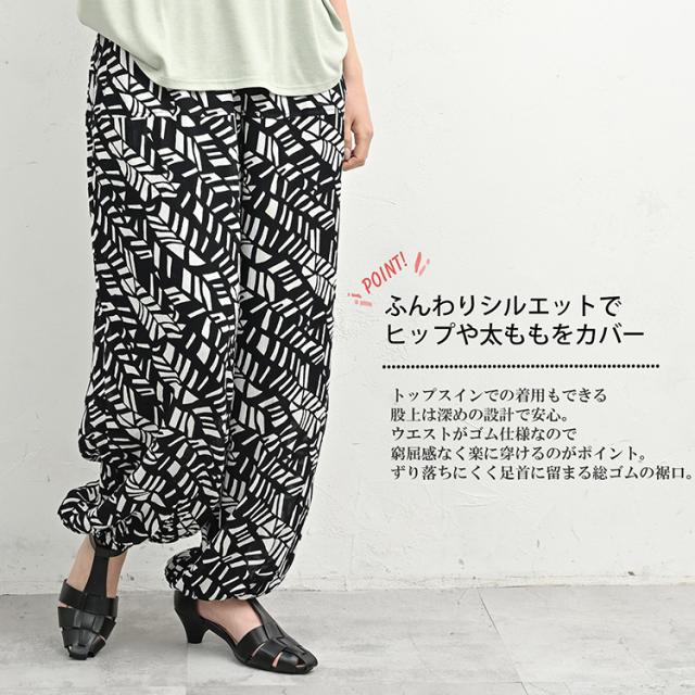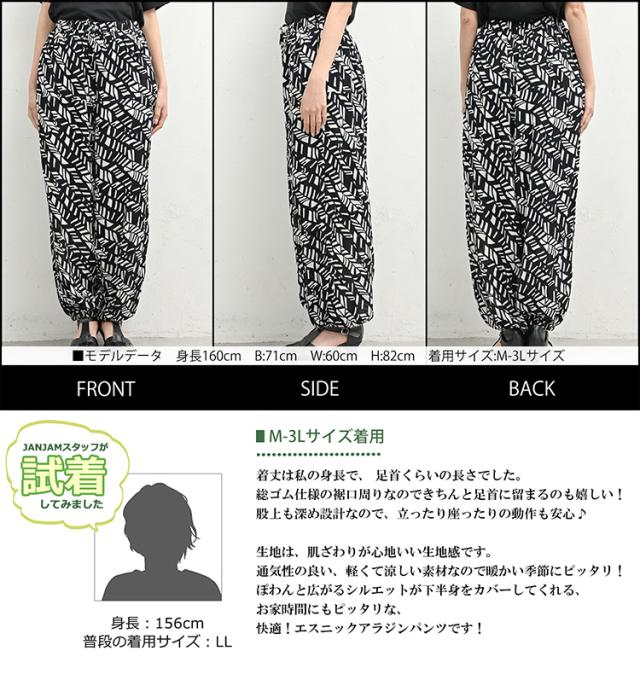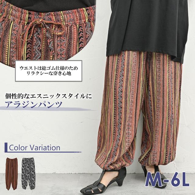 大きいサイズ レディース アラジンパンツ ロング丈 ウエストゴム エスニック柄 裾ゴム ボトムス M-3L/4L-6L ゆったりサイズ ぽっちゃり女子 プラスサイズ