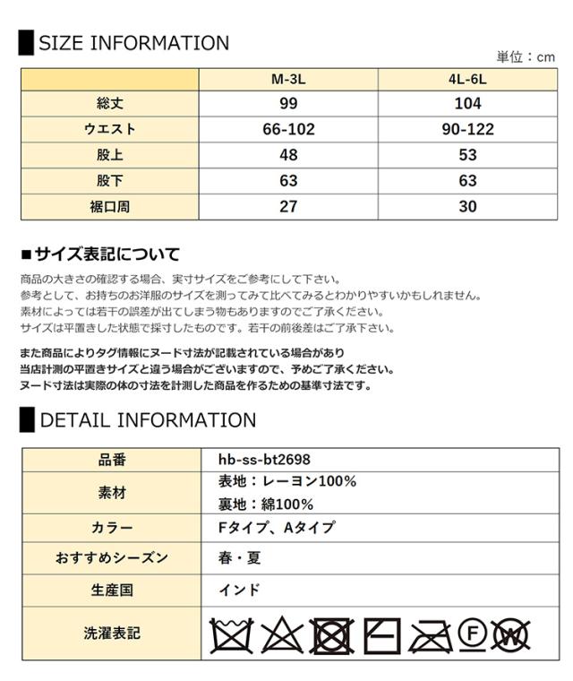 4L-6L:総丈104 ウエスト90-122 股上53 股下63 裾口周30