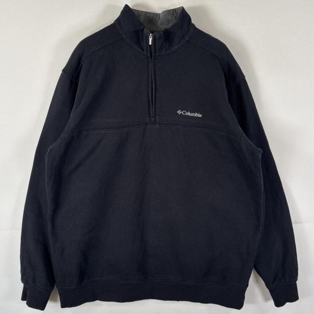 古着 コロンビア Columbia スウェット ハーフジップ トレーナー プルオーバー ワンポイントロゴ刺繍 L ブラック メンズ