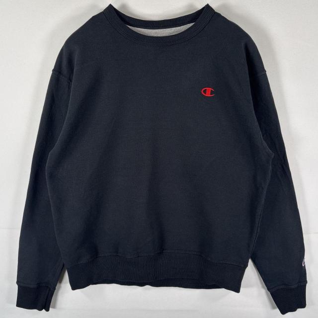 古着 チャンピオン Champion スウェット トレーナー プルオーバー ワンポイントロゴ刺繍 クルーネック L ブラック メンズ