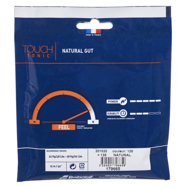 ナチュラルストリングの普及版。コストパフォーマンスに優れたナチュラルストリング。飛びと耐久性を求めるプレーヤーに。このストリングはフランス製です。