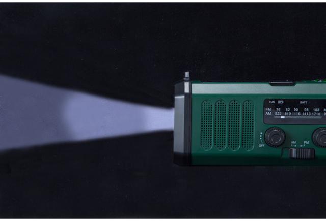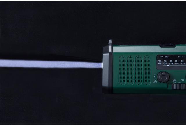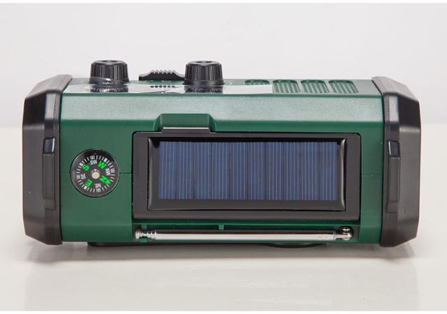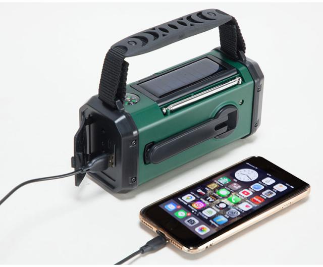 充電方法が3種類から選択可能(ソーラー充電、USB充電、手回し充電)