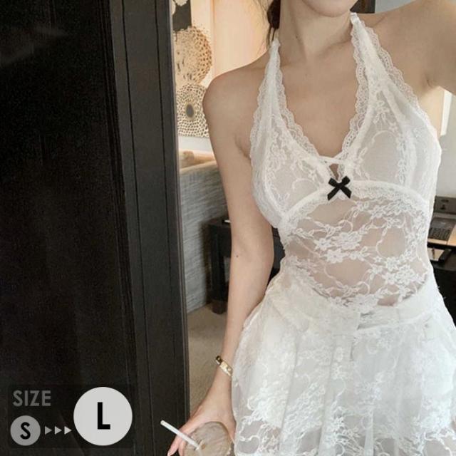 ワンピース レース 花柄 ホルターネック 透け感 白 重ね着 セクシー インナー 韓国風 大人 可愛い かわいい 秋 冬 春 ブラウス 10代 20代 30代 OL レディース ファッション ゆったり カジュアル おしゃれ シンプル