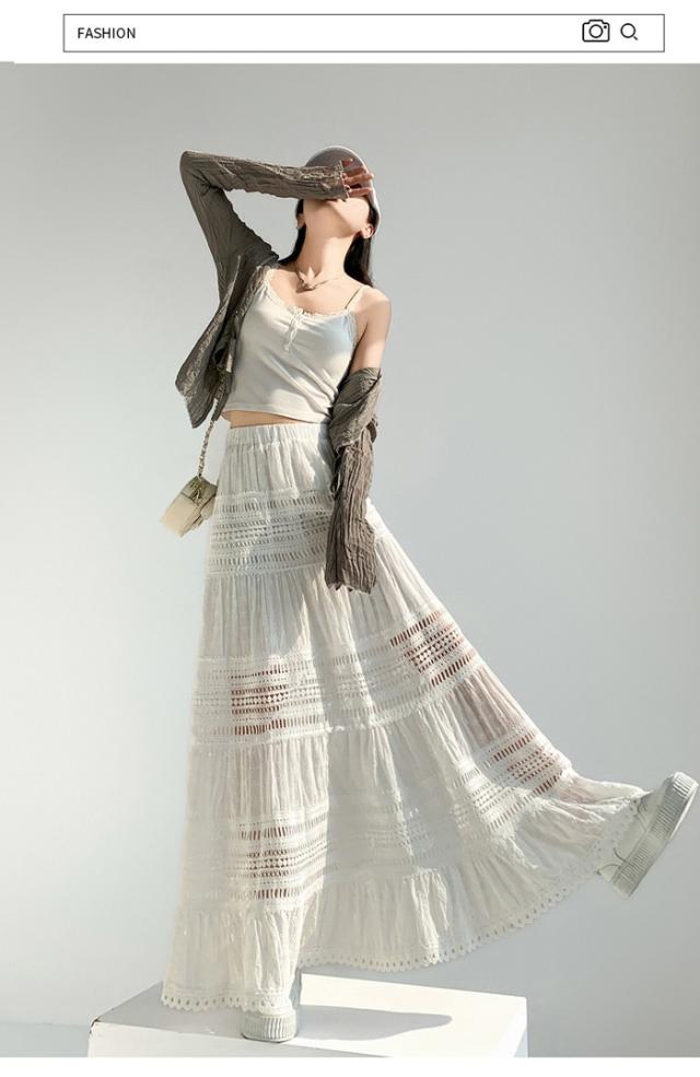 マキシ丈スカート 総レース Aライン 大人 カジュアル 春夏 透け感 きれいめ レディース 透かし編み 涼しい ゆったり ゴムウエスト リゾート ロングスカート 海 サマー ビーチ 20代 30代 40代 ナチュラル ホワイト 白 S M L XL