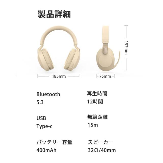 ヘッドホン Bluetooth5.3 ワイヤレス ヘッドセット おしゃれ USB 有線 兼用 マイク付き マイク 通話 イヤホン ブルートゥース おすすめ 人気 売れ筋 かわいい