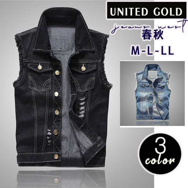 デニムベスト メンズ ジレ ジーンズ ダメージ加工 Gジャン ジャケット チョッキ ビンテージ ノースリーブ ストリート 大きいサイズ アウター