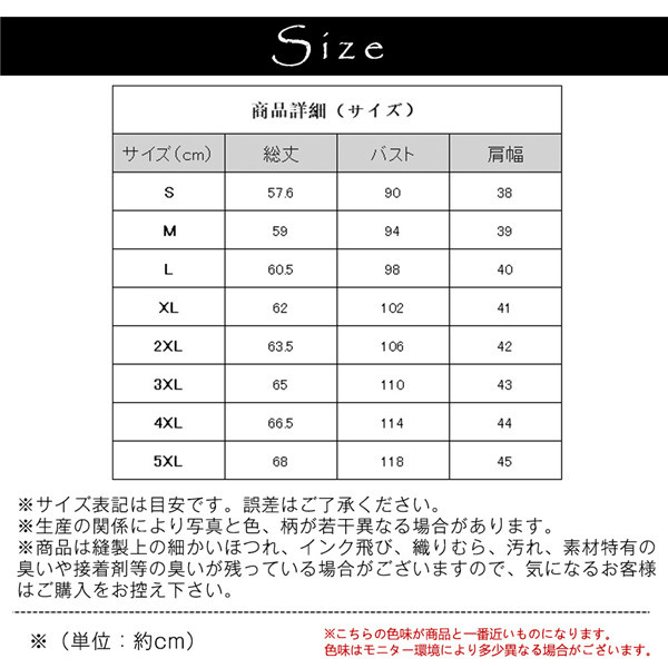 サイズ:/S/M/L/XL/2XL/3XL/4XL/5XL