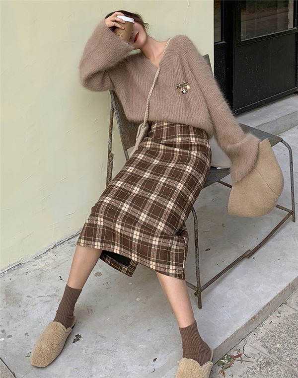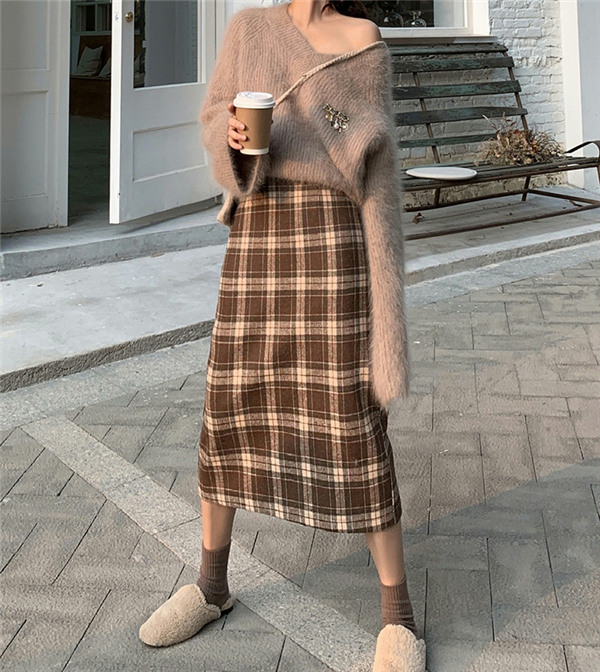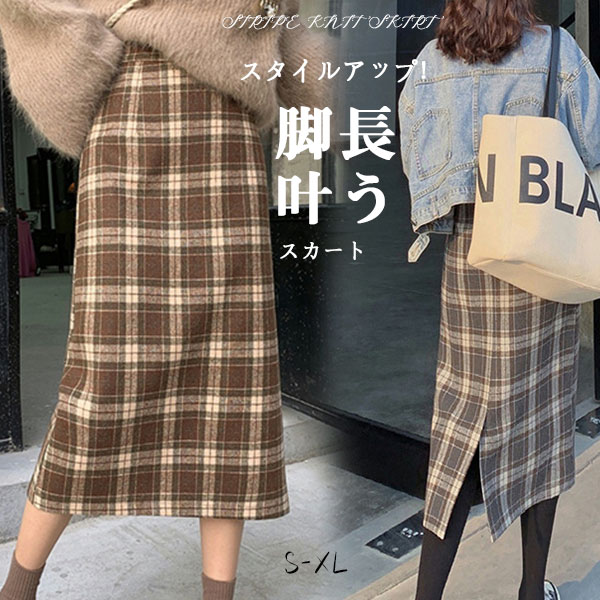 スカート 秋 レディース タイト ロングスカート チェック柄 ロング Aライン 通勤 膝丈 体型カバー 大きいサイズ ボトムス ハイウェスト