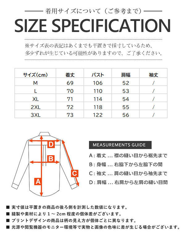 サイズ:/M/L/XL/2XL/3XL