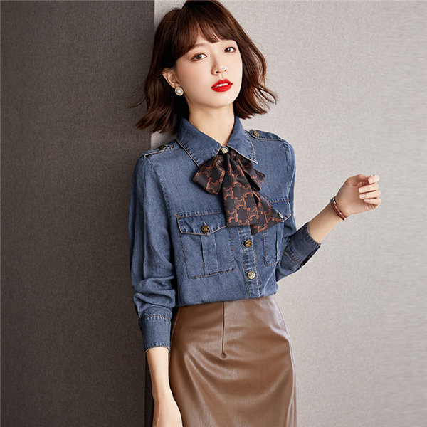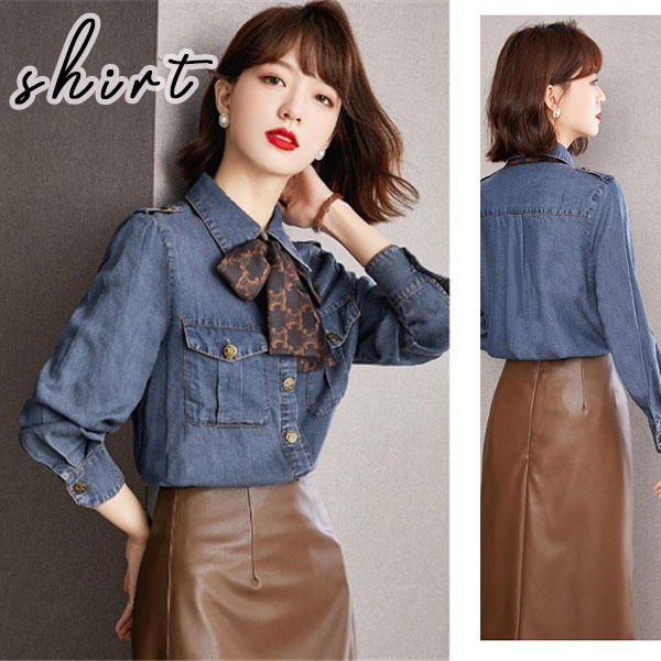 デニムシャツ レディース 大きいサイズ カジュアル ブラウス シャツ ベーシック ゆったり 前開き 可愛い オシャレ 長袖 トップス ブラウス