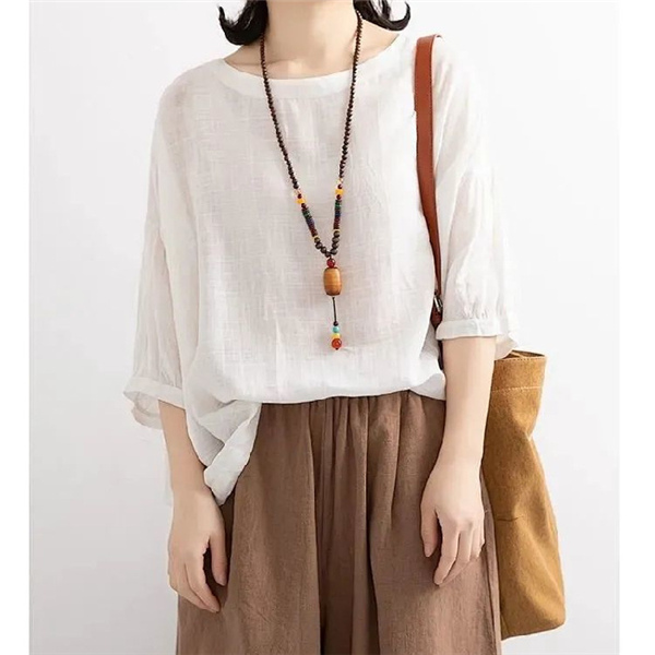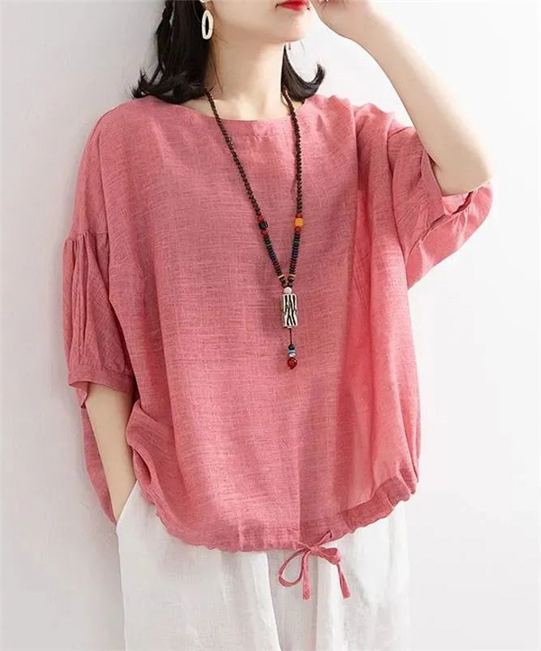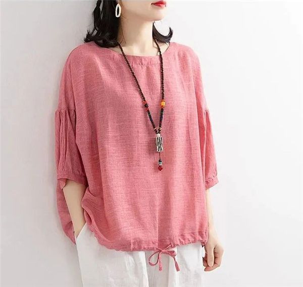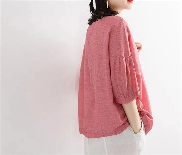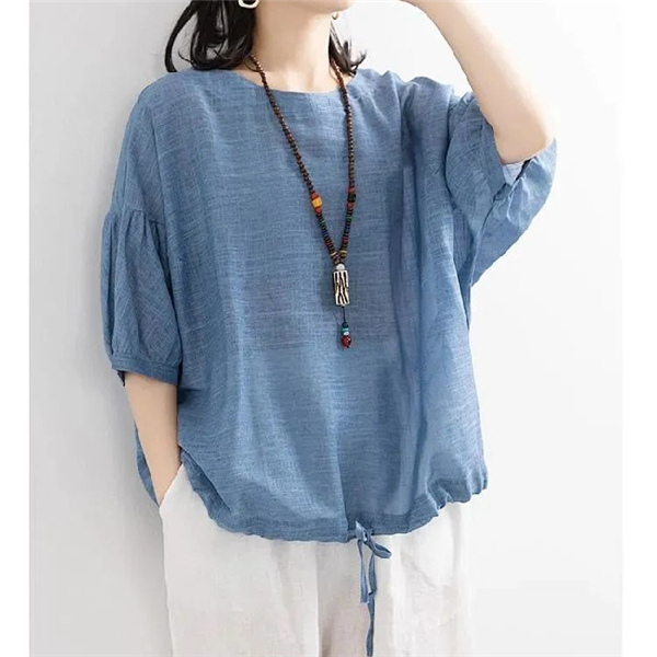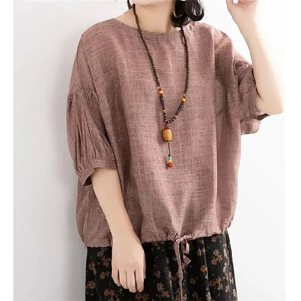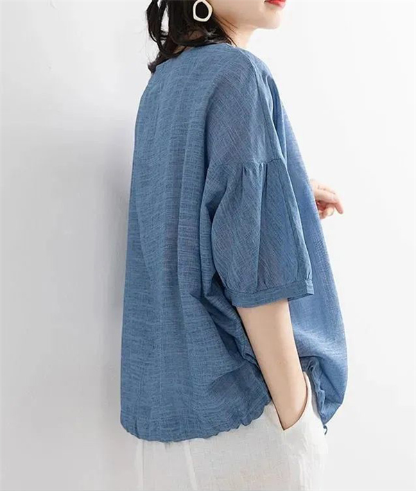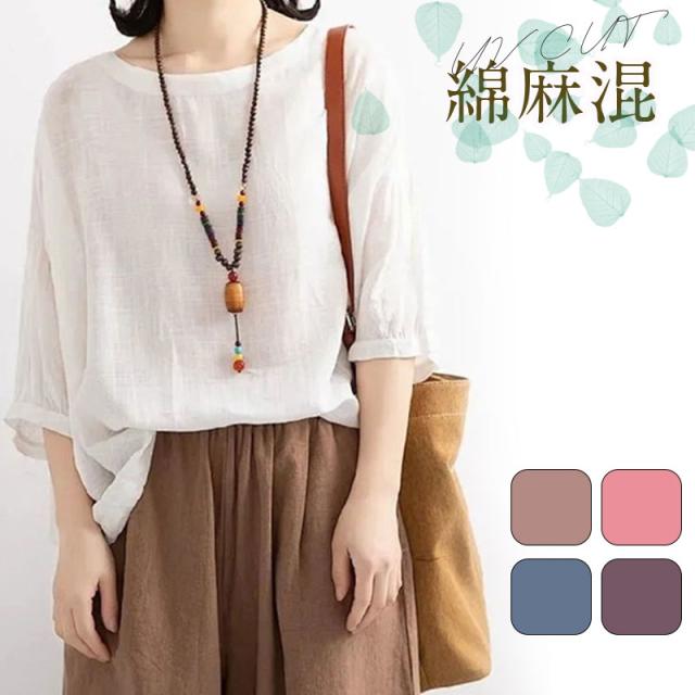 【キーワード】シャツ 綿麻ブラウス レディース 薄型 綿麻 半袖Tシャツ トップス 無地 体型カバー ゆったり 大きいサイズ ボリューム袖 夏新作