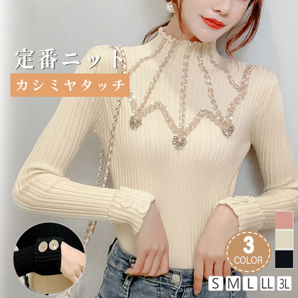【キーワード】ニットセーター レディース セーター キラキラ ハイネック タートルネック 長袖 トップス 秋冬 オシャレ きれいめ 上品 新作 ストレッチ 暖かい