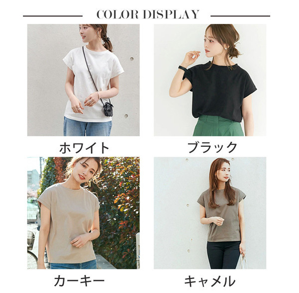 フレンチスリーブ 半袖 レディース Tシャツ カットソー トップス クルーネック 丸首 無地 ゆったり 体型カバー シンプル オフィス 着回し 女性着