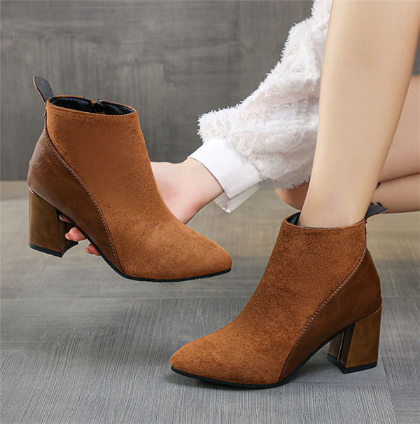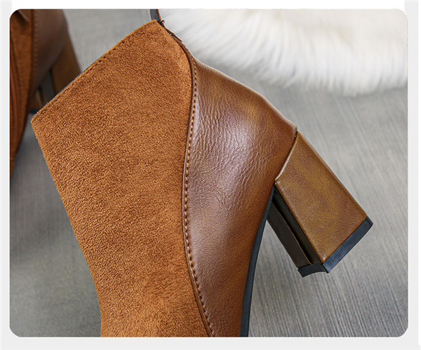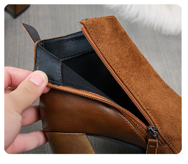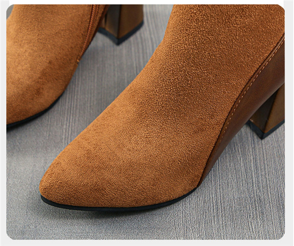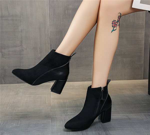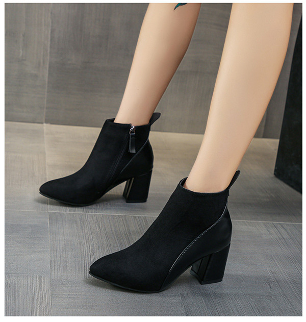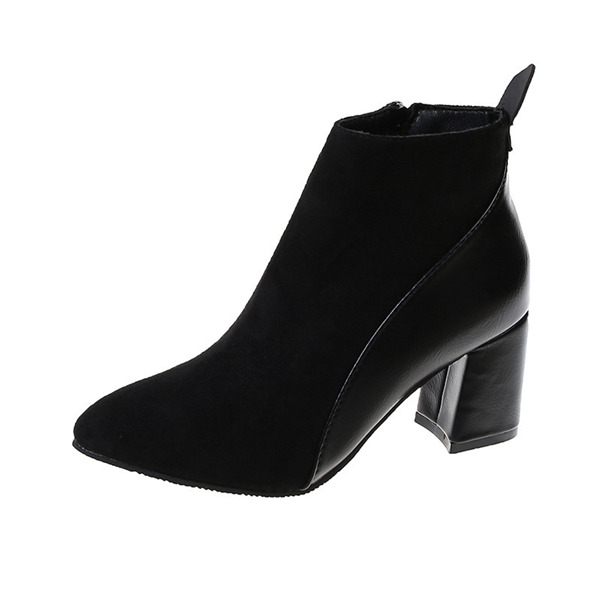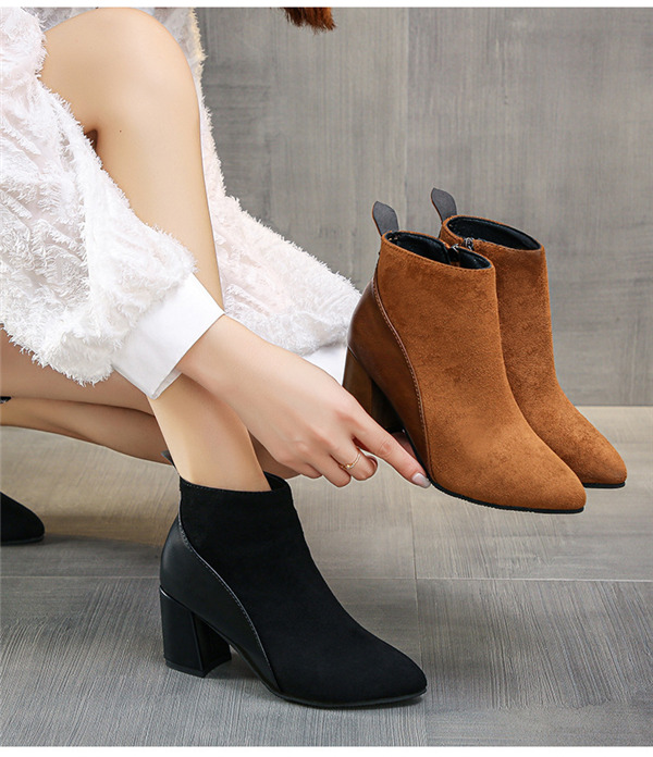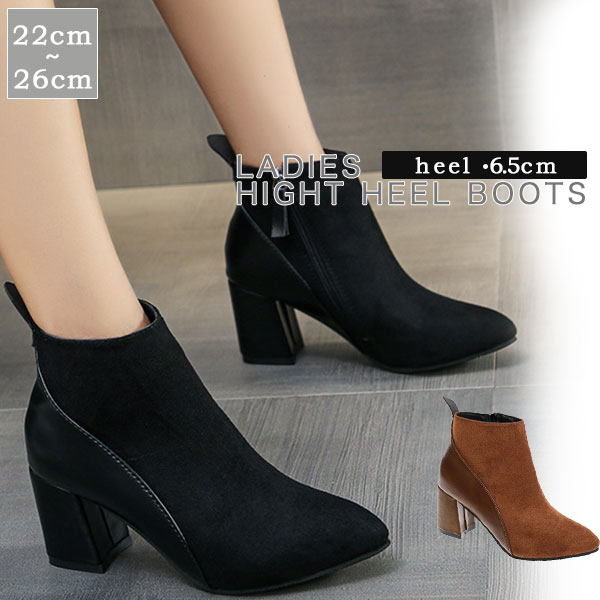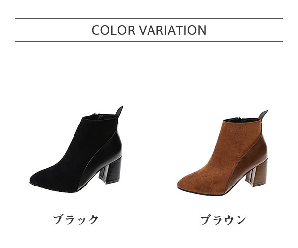 ショートブーツ 太ヒール レディース ブーツ スエード サイドジップ シューズ 切り替え 美脚 歩きやすい 黒 秋冬 靴 おしゃれ 大きいサイズ