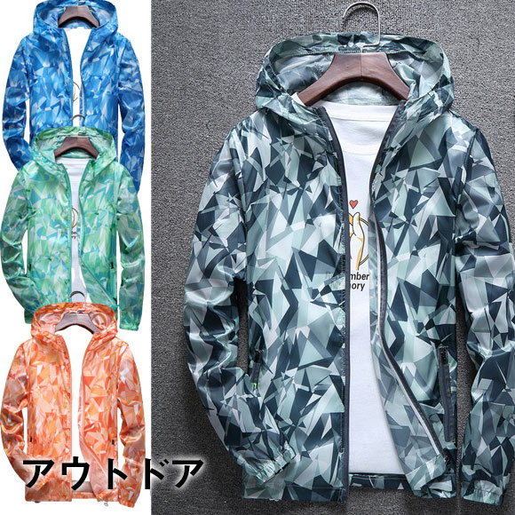 人気急上昇 メンズ 長袖 フード付き 薄手 マウンテンパーカー アウトドア ラッシュガード 迷彩柄 通気性 日焼け 紫外線対策 大きいサイズ