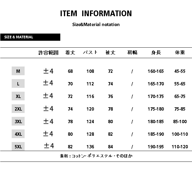 サイズ:/M/L/XL/2XL/3XL/4XL/5XL