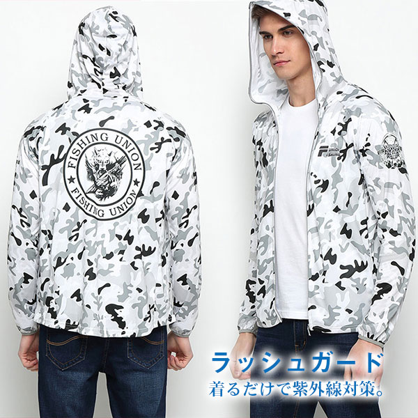 ラッシュガード パーカー UVカット パーカー マウンテンパーカー メンズ 迷彩柄 接触冷感 薄手 UVパーカー 日焼け 大きいサイズ フード付き