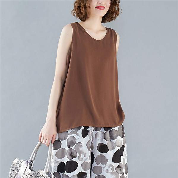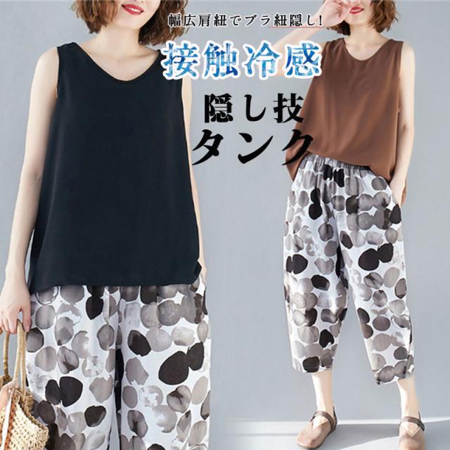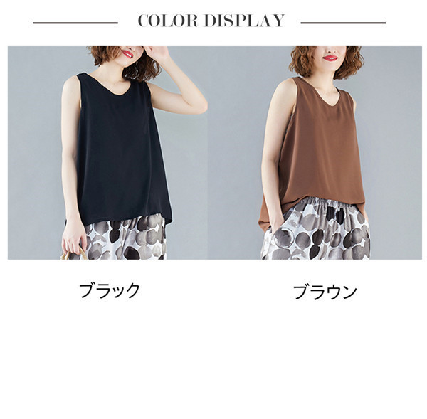 ノースリーブ トップス タンクトップ キャミソール ブラウス コットンノースリーブ ラウンドネック 無地 薄手 インナー おしゃれ