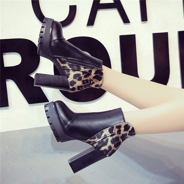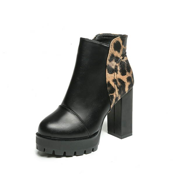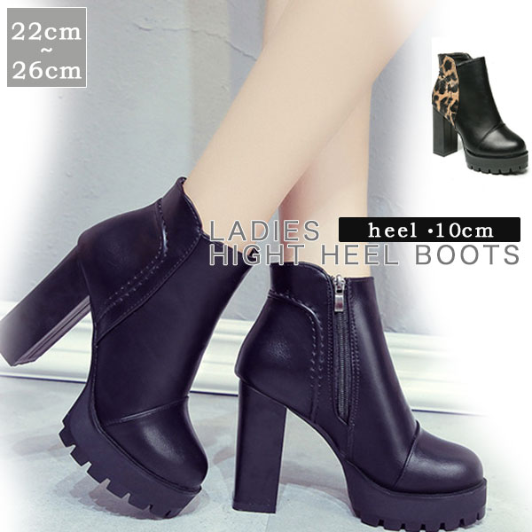 ショートブーツ 太ヒール レディース ヒョウ柄 ブーツ エンジニア チャンキーヒール 美脚 歩きやすい 黒 秋冬 靴 履きやすい 通勤 おしゃれ
