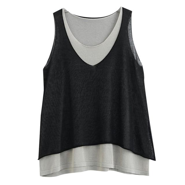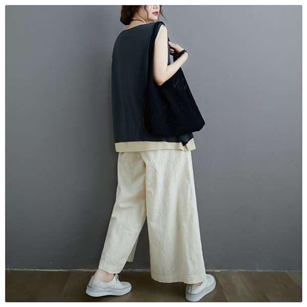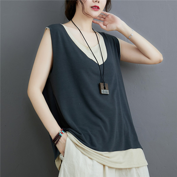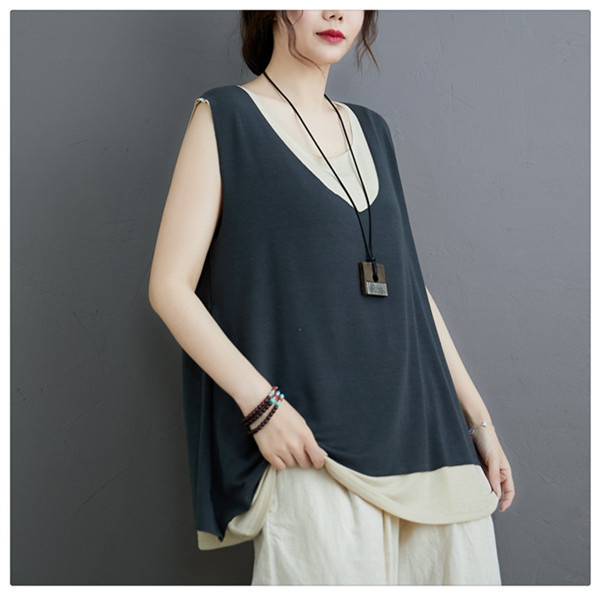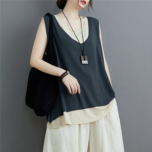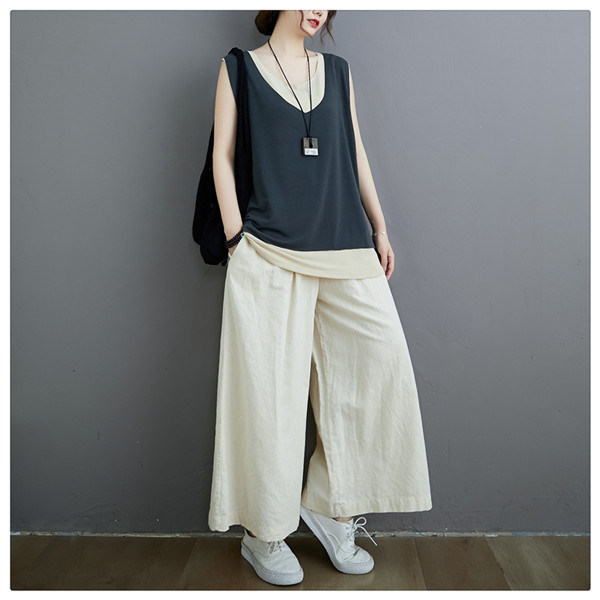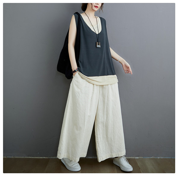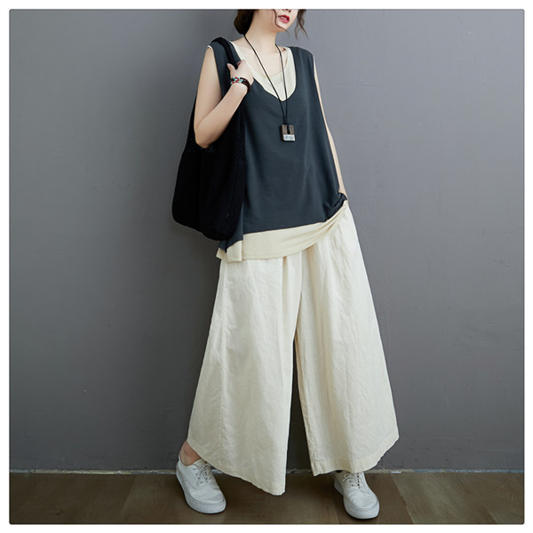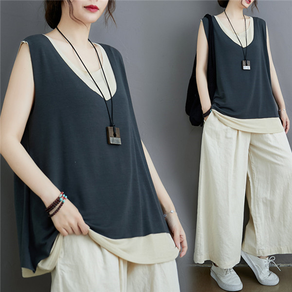 ノースリーブ トップス レイヤード タンクトップ キャミソール ラウンドネック ブラウス インナー 綿麻 レイヤード 無地