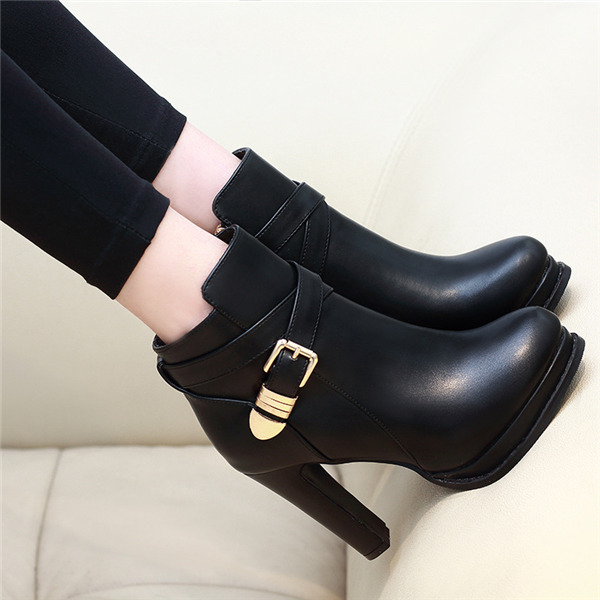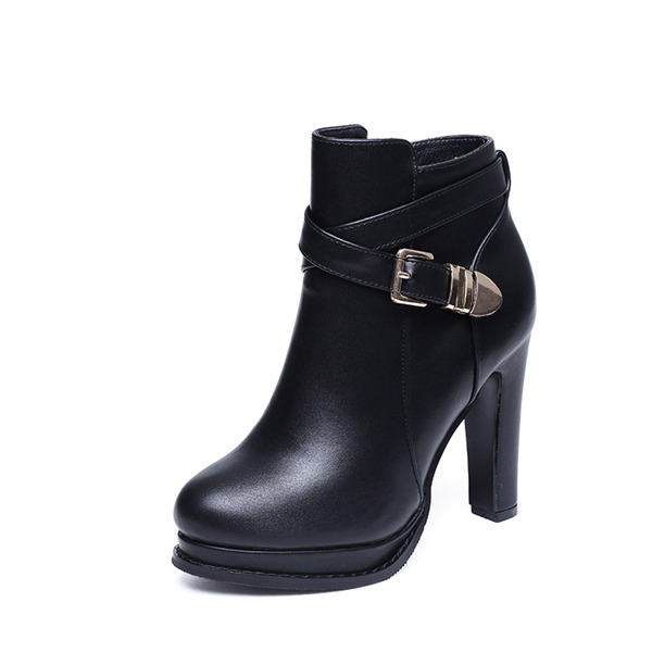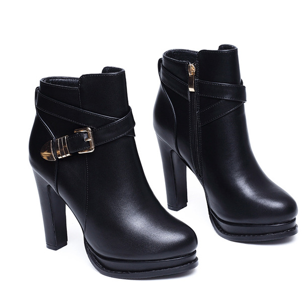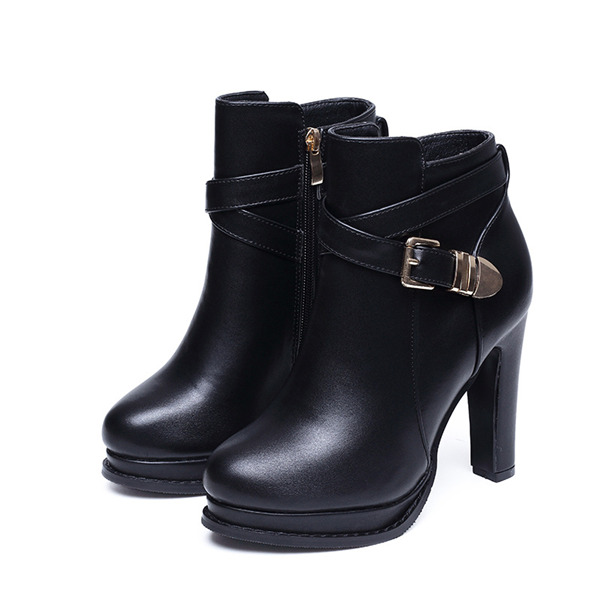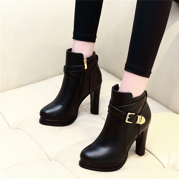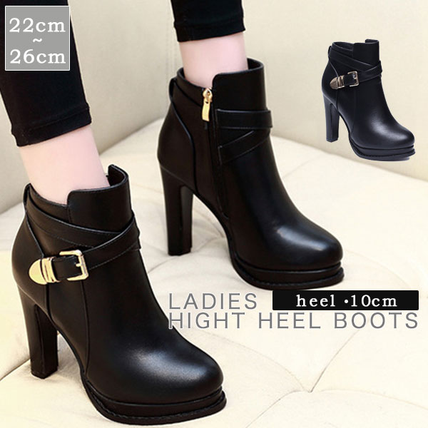レディース ブーツ ショートブーツ 黒 太ヒール ベルト付き シューズ ブーティー 疲れない 美脚 チャンキーヒール 履きやすい かわいい 通勤