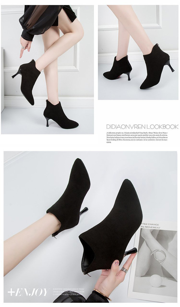 レディース ブーツ ショートブーツ 黒 ハイヒール スエード シューズ ブーティー 疲れない 美脚 ピンヒール 痛くない 靴 かわいい 秋冬 通勤