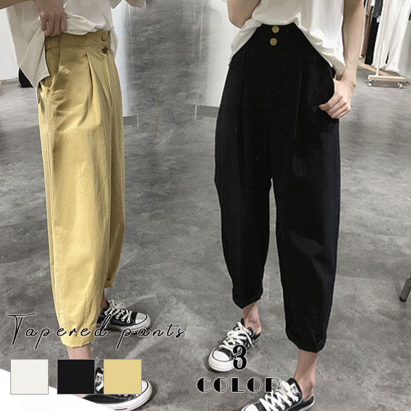 テーパードパンツ きれいめ レディース ボタン ブラック ホワイト 大きいサイズ 体型カバー ボトムス ストレッチパンツ 美脚 シンプル 春秋
