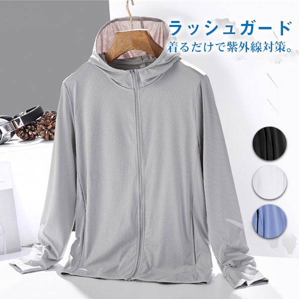 ラッシュガード パーカー UVカット パーカー マウンテンパーカー メンズ 接触冷感 薄手 UVパーカー 大きいサイズ 長袖 日焼け 水着用 フード付き