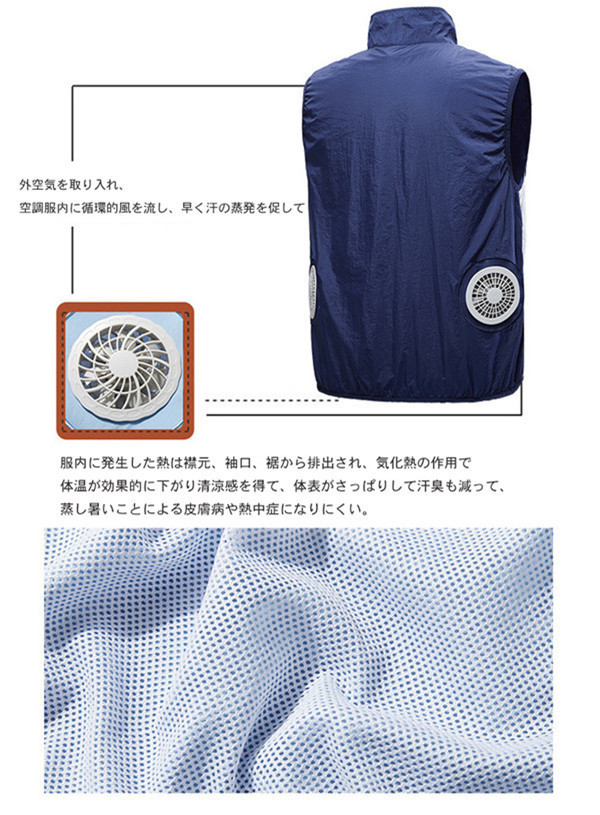 商品名:空調服ベストセット バッテリー付き+ファン付き 空調ベスト クールベスト 農業釣り ゴルフ 外仕事 静音大風量 2021版 作業着 夏熱中症対策