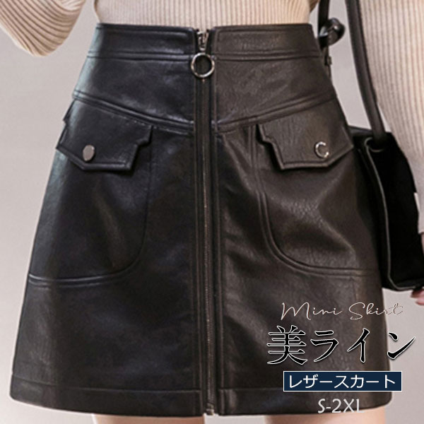 スカート レディース レザースカート PU ミニスカート Aライン タイト フェイクレザー 革スカート ボトムス 体型カバー 大きいサイズ 通勤