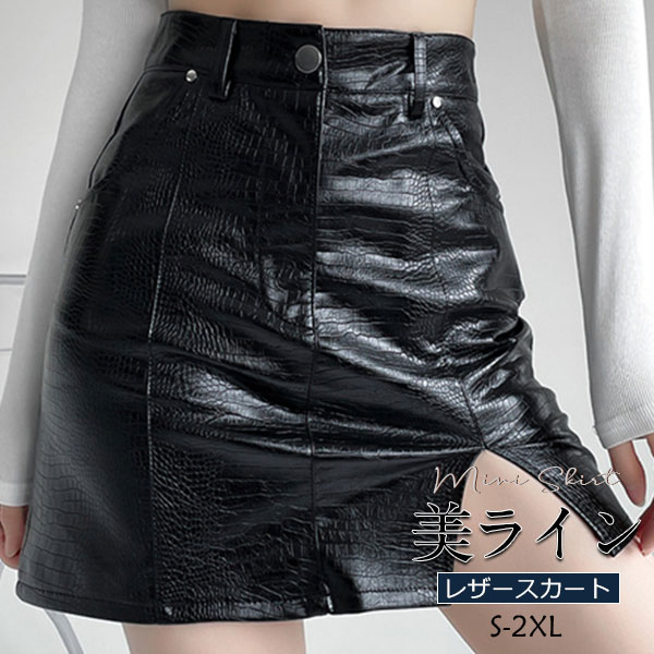 スカート レディース レザースカート PU ミニスカート Aライン ワニ柄 タイト フェイクレザー 革スカート ボトムス 体型カバー 大きいサイズ