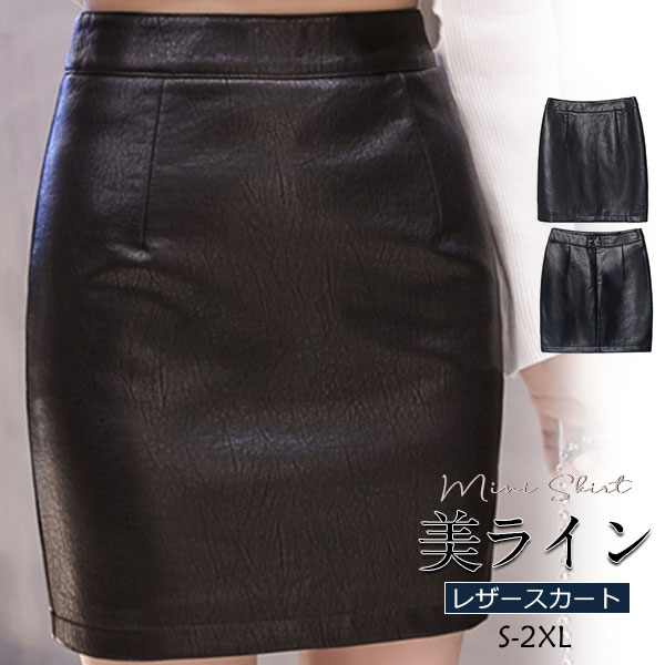 スカート レディース レザースカート PU ミニスカート Aライン タイト フェイクレザー 革スカート ボトムス 体型カバー 大きいサイズ 通勤