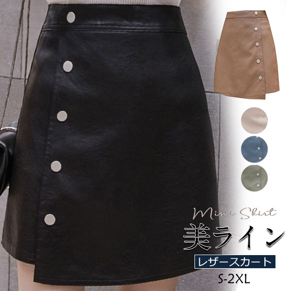 スカート レディース レザースカート PU ミニスカート Aライン タイト フェイクレザー 革スカート ボトムス 体型カバー 大きいサイズ 通勤