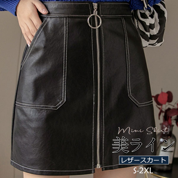 スカート レディース レザースカート PU ミニスカート Aライン タイト フェイクレザー 革スカート ボトムス 体型カバー 大きいサイズ 通勤
