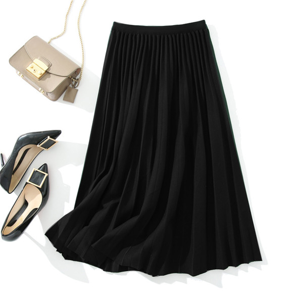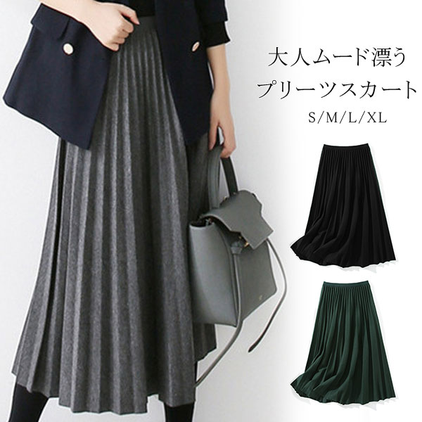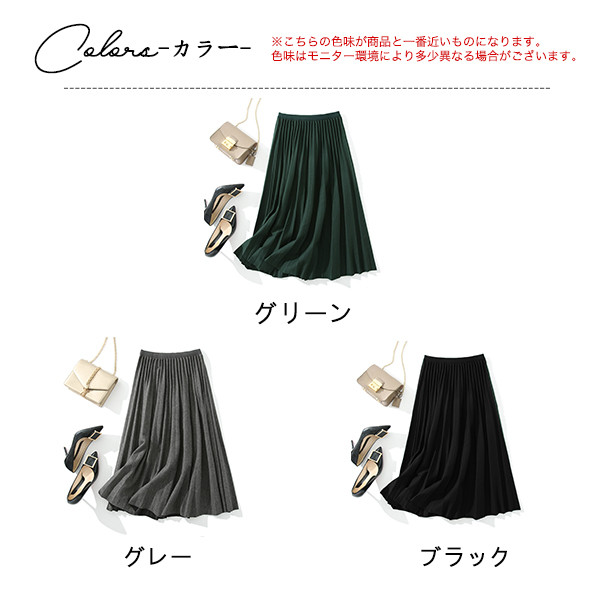 プリーツスカート レディース ロング丈 ニット ウエストゴム ハイウエスト フレア カジュアル 着痩せ エレガント ビジネス 通勤 OL 普段着