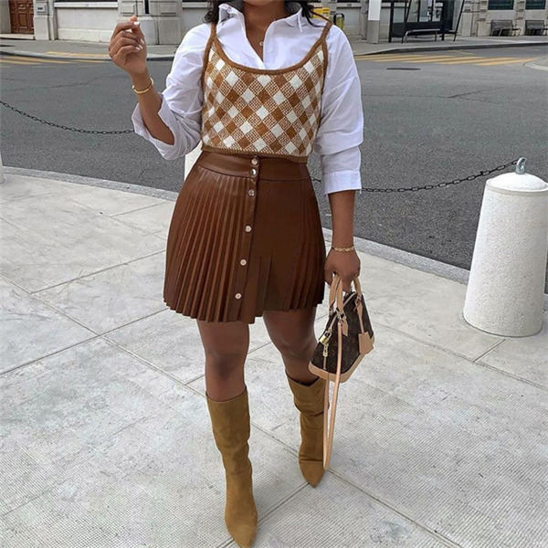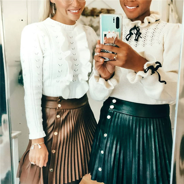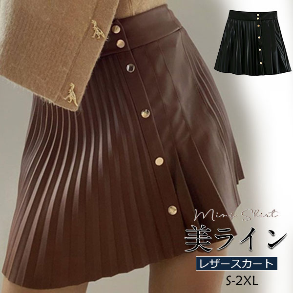 【キーワード】レザースカート プリーツスカート 革スカート ウェストゴム ミニスカ ハイウェスト レザー ショート丈 春 秋 PU合皮 冬 おしゃれ 可愛い 30代 40代 50代 ひざ丈 オフィス 膝下丈 無地 ゆったり