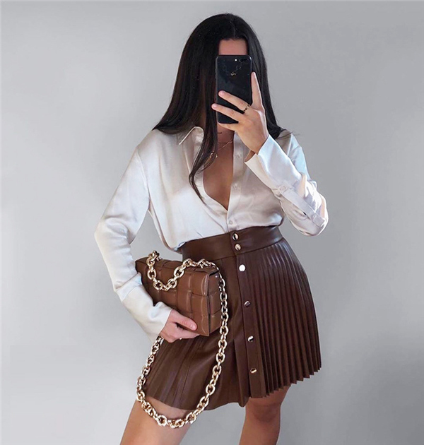 柔らかいフェイクレザーで甘辛なミニスカート!