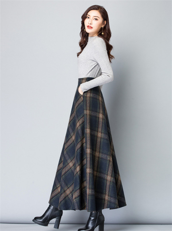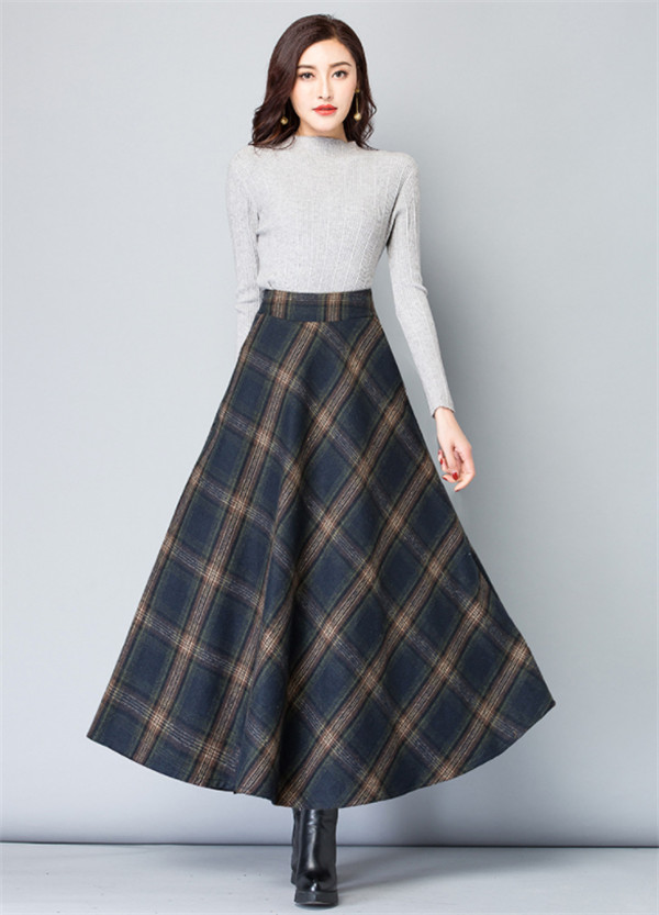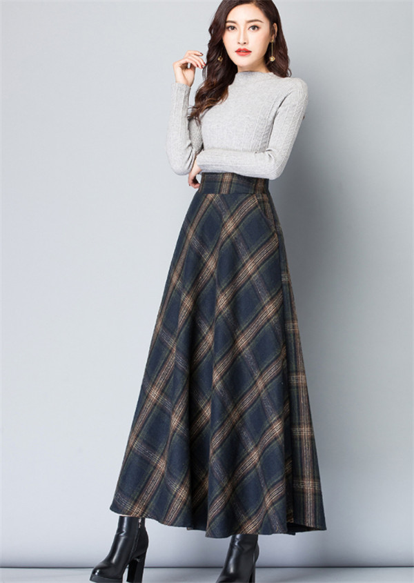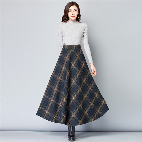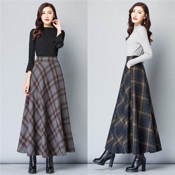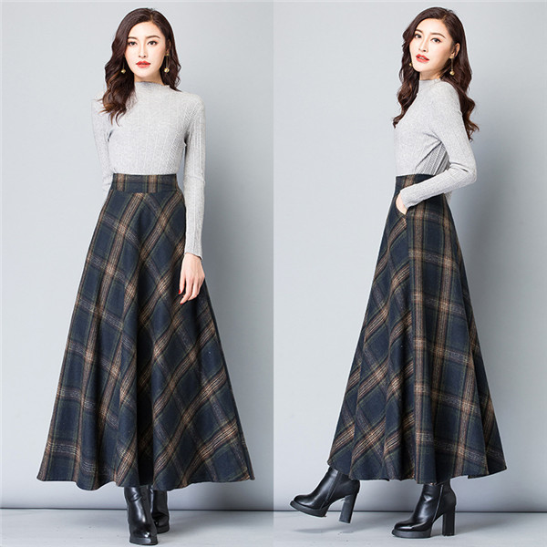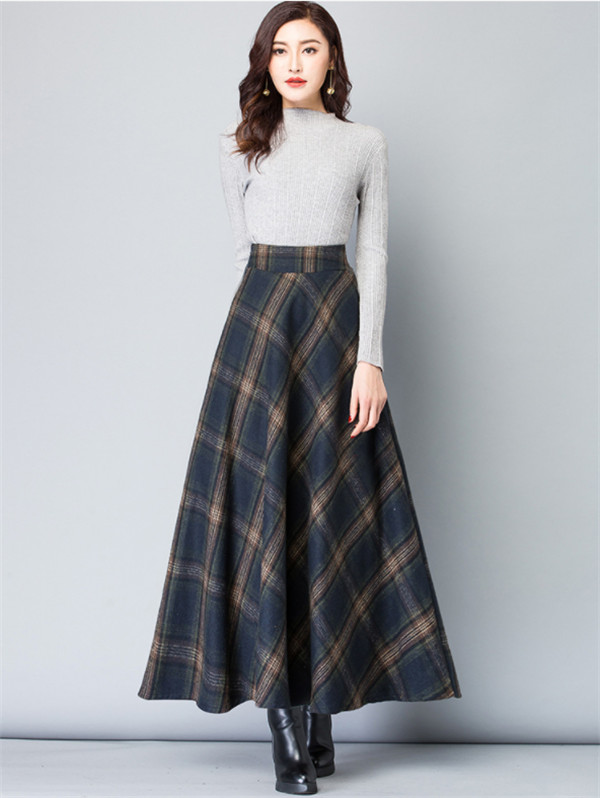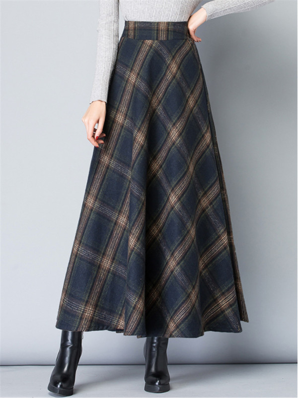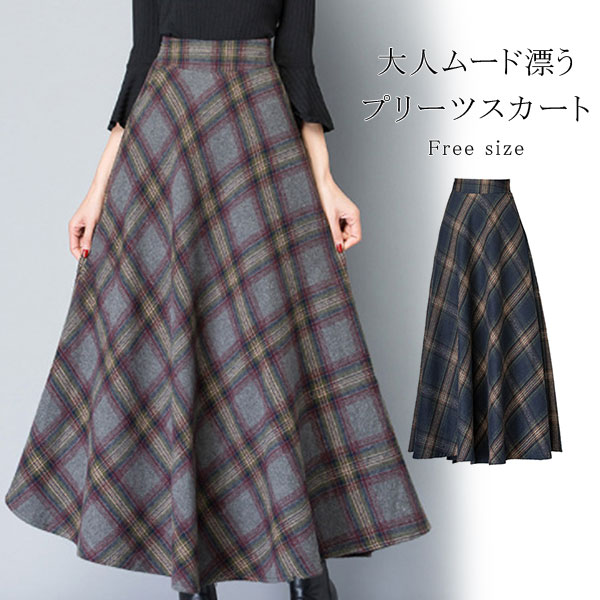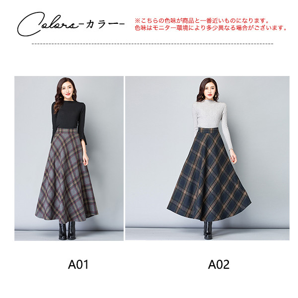 ロングスカート レディース スカート 厚手 チェック柄 aライン フレア ハイウエスト 体型カバー ゆったり 着痩せ 秋冬 エレガント 通勤 OL