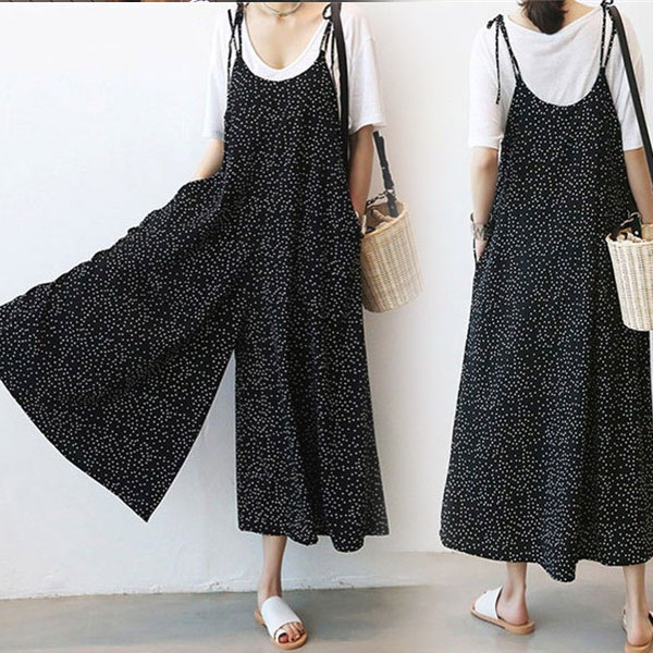 サロペット オールインワン レディース パンツ ワイドパンツ ガウチョ オーバーオール カジュアル 大きいサイズ 体型カバー マキシ丈 送料無料