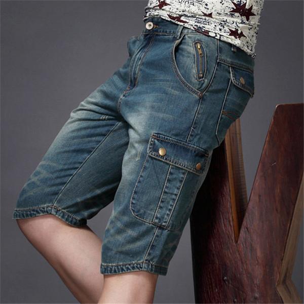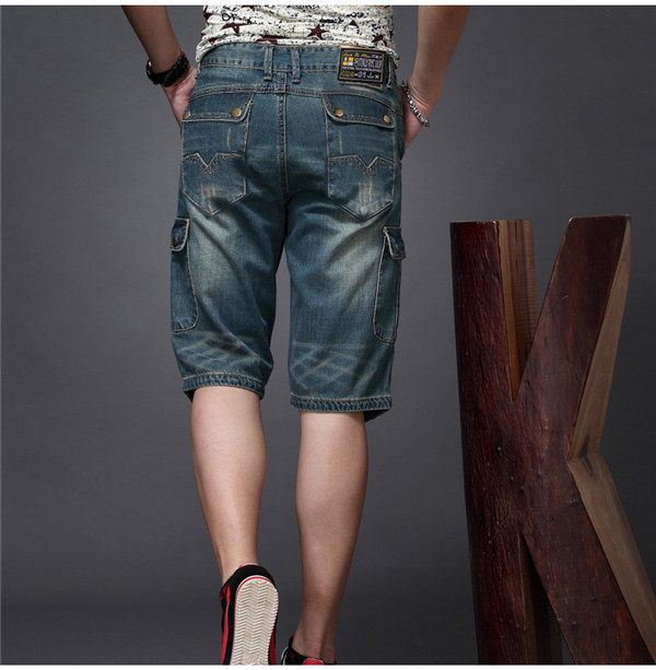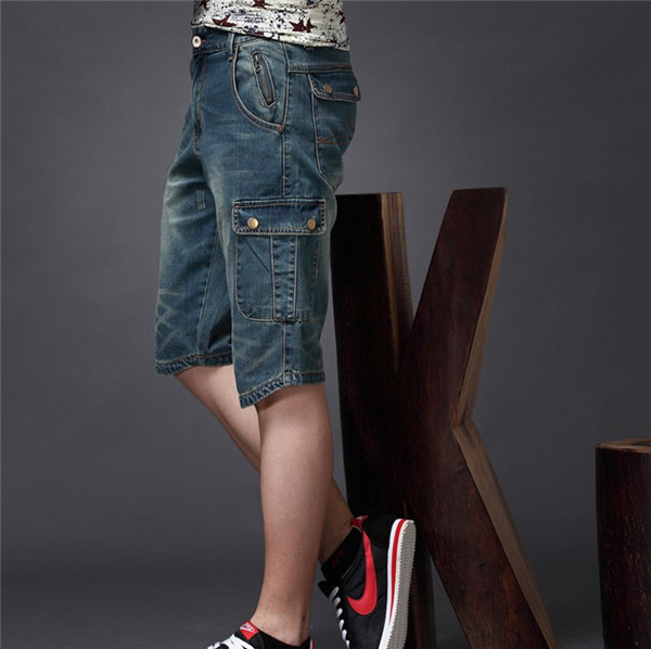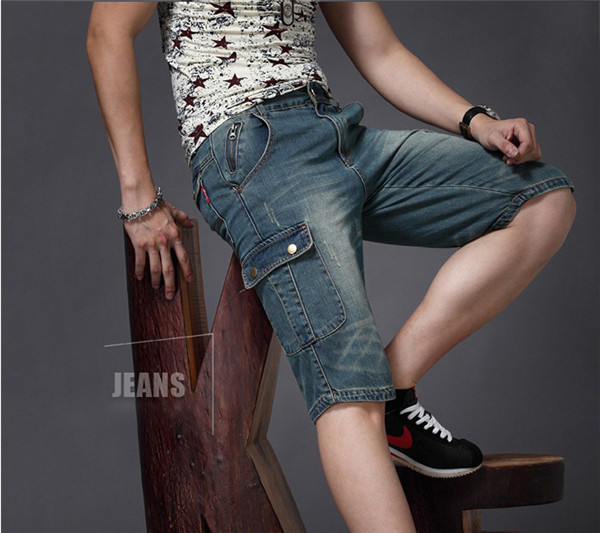デニム パンツ メンズ 7分丈 大きいサイズ サルエルパンツ 太め ハーフパンツ ボトムス Gパン ジーンズ ウォッシュ加工 半ズボン ゆったり 夏