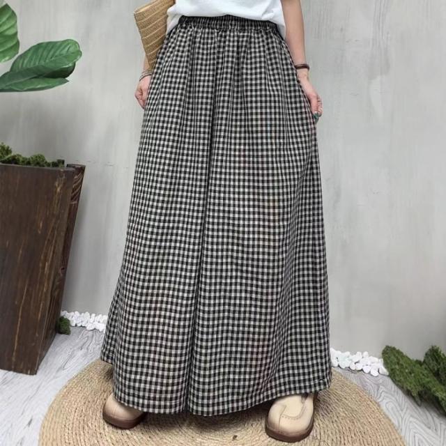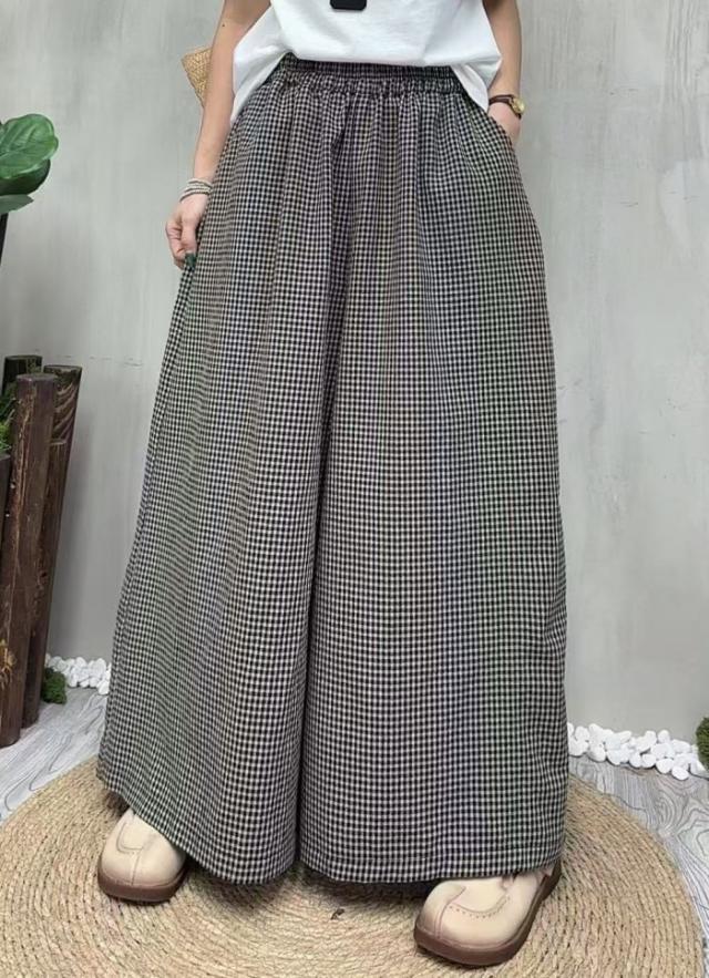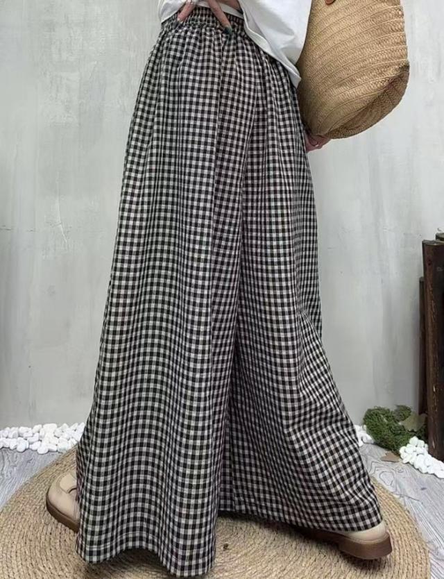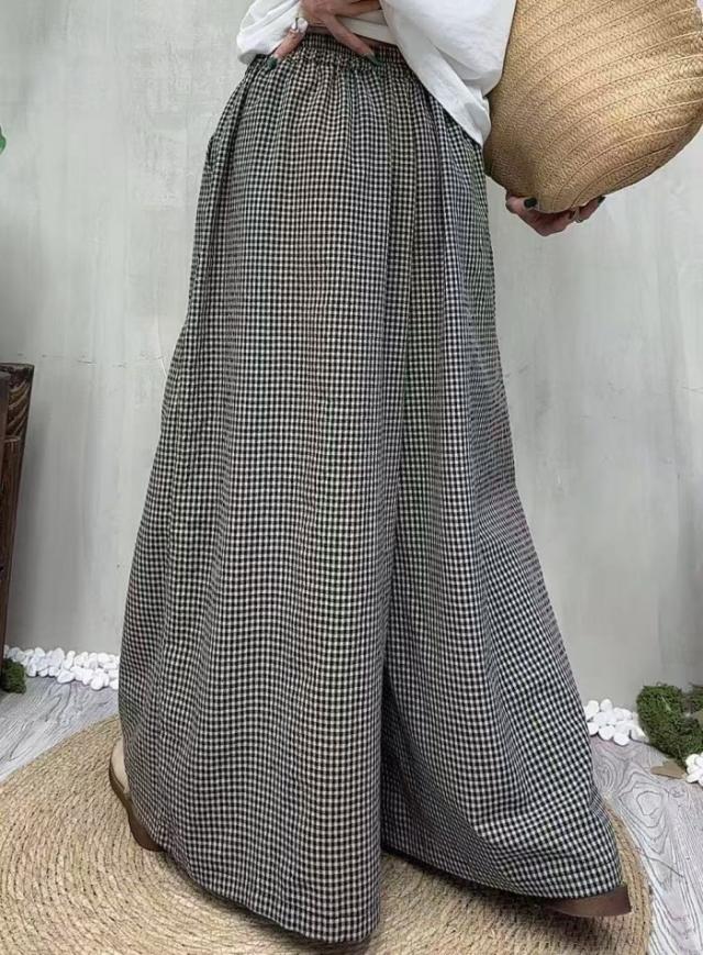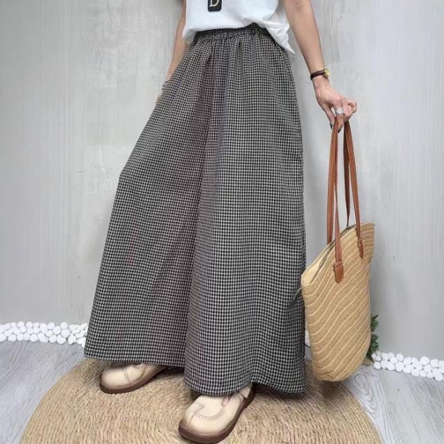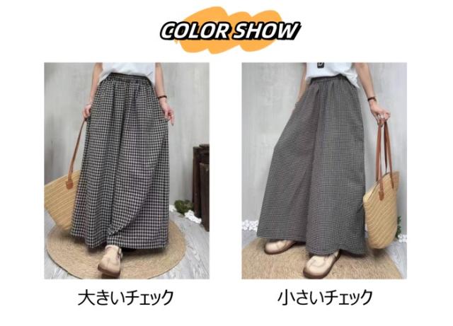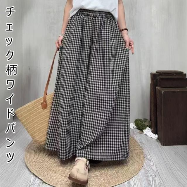チェック柄パンツ ワイドパンツ レディース 森ガール ガウチョパンツ チェック柄 ロングパンツ 春夏 ゆったり カジュアル 体型カバー