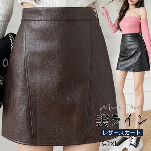 スカート レディース レザースカート PU ミニスカート Aライン タイト フェイクレザー 革スカート ボトムス 体型カバー 大きいサイズ 通勤