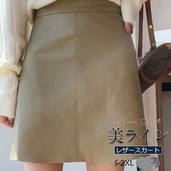 スカート レディース レザースカート PU ミニスカート Aライン タイト フェイクレザー 革スカート ボトムス 体型カバー 大きいサイズ 通勤